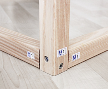 • Aynı etiketi taşıyan ahşap profillerin uçlarını etiketleri yatağın dışına bakacak şekilde konumlandırın ve size verilen cıvatalar ve allen anahtar yardımı ile montajını yapın.