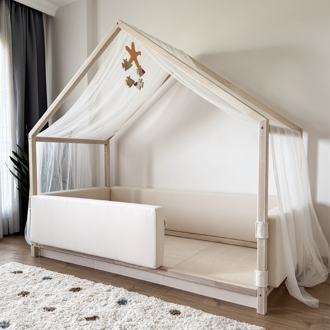 4 tarafı koruyucu kenar yastıklar ile çevrilidir. Yerdeki hava akımını engeller ayrıca bebeğinizin güvenliği için tam koruma sağlar. Bebeğiniz 2 yaşından küçük ise 4 tarafı kapalı ön yastıklı modelimizi öneririz. Kenar yastıkların her biri birbirinden ayrıdır. İstenilen taraf çıkarılabilir veya yukarıya çekilerek kaldırılabilir. Veya ihtiyaç duyarsanız üst üste takılması da mümkündür.